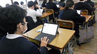 5年生の10分間テストは外国語 2023年1月19日 16時45分 外国語のテストもタブレットでおこなわれます 1/18今日の10分間テストの教科は外国語です。各自タブレットを準備して行います。今日のテストの様子です。